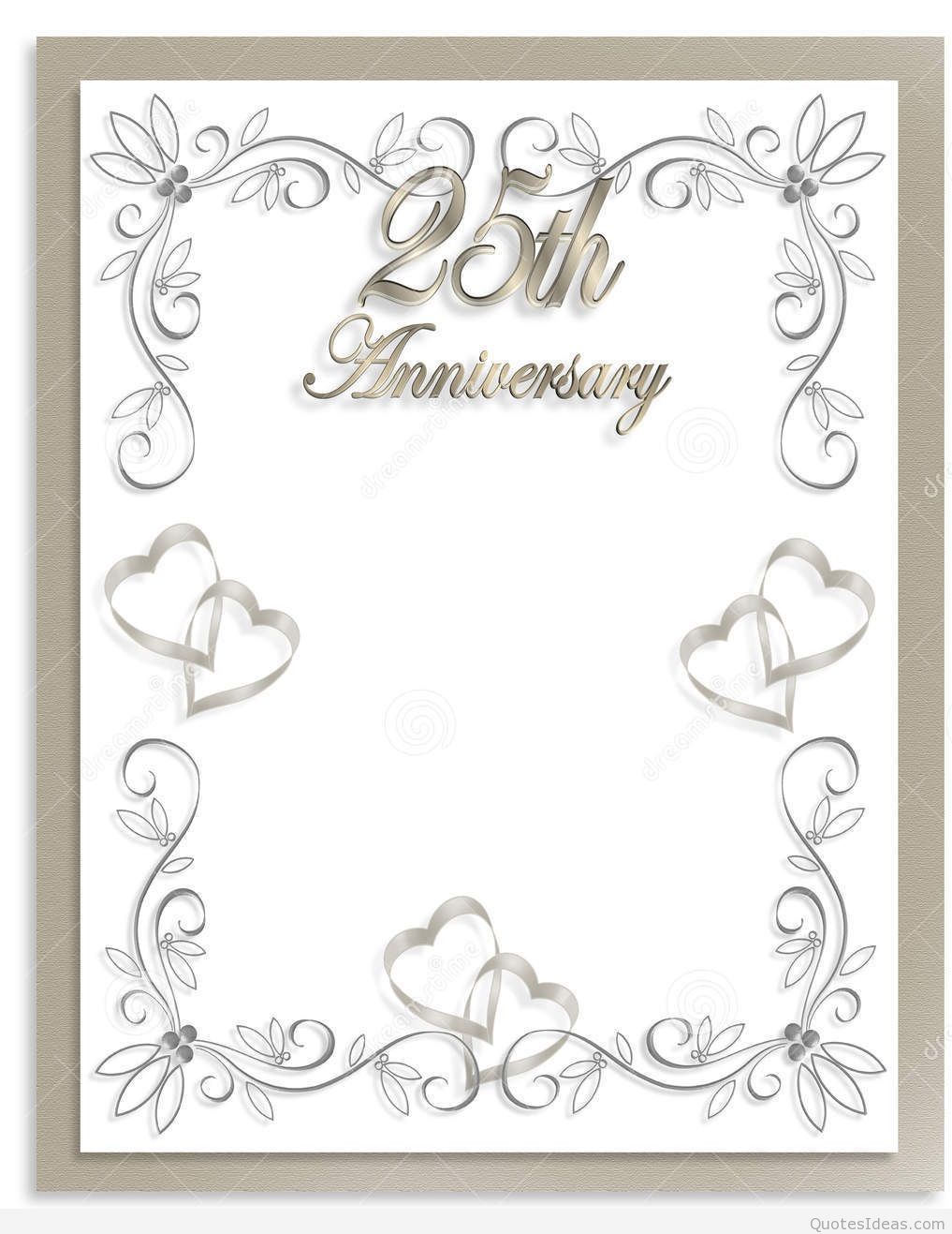 Description: A 25th anniversary card with hearts and flowers on a white background with a gold lettering and a silver border.
