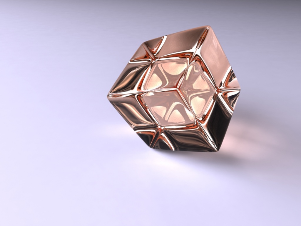 Description: A 3d image of a rubik cube with a white background and a light reflection on the surface of the cube.