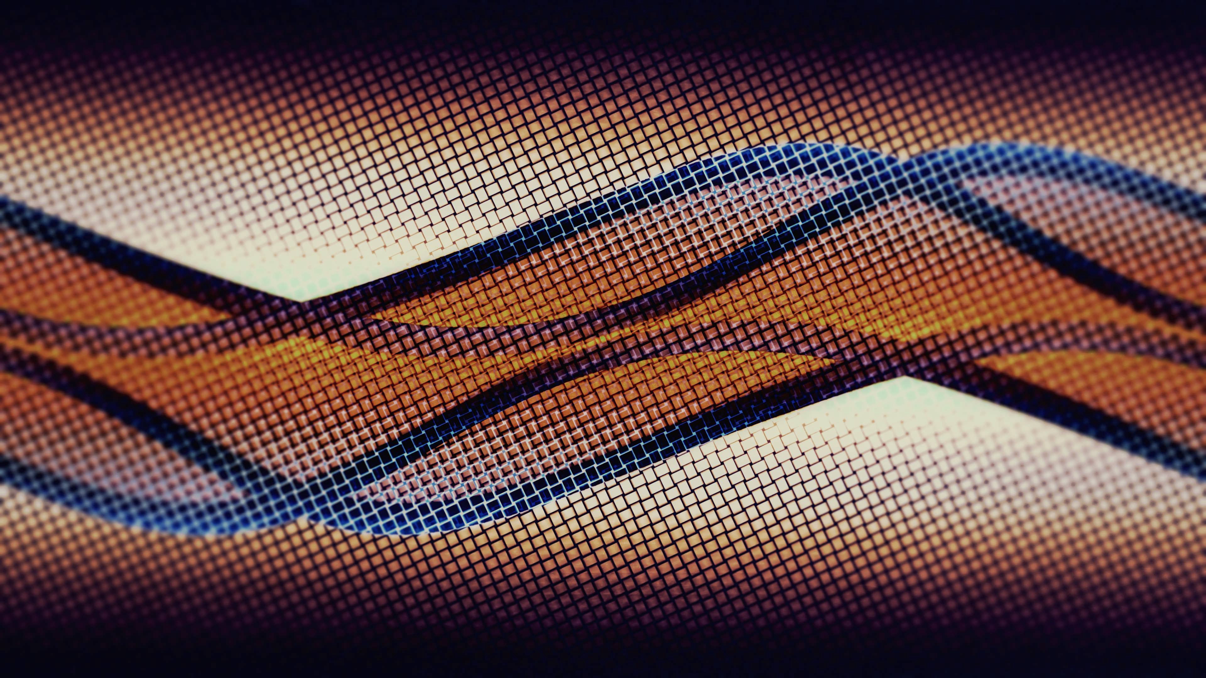 Description: A blue and orange abstract background with a wavy design on it's side.