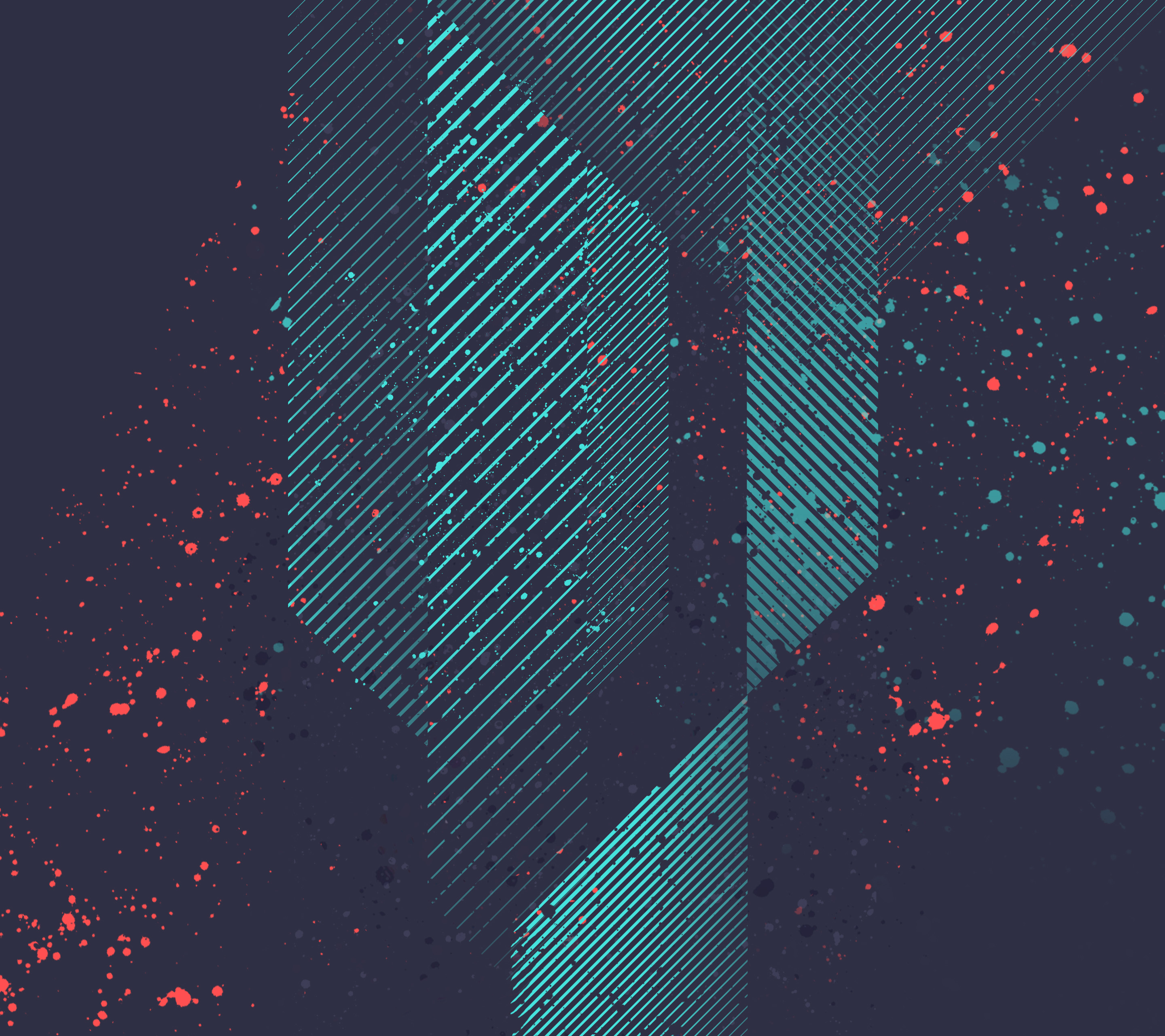 Description: A blue and red abstract background with a curved arrow in the center of the image and a red and blue dotted line in the middle.