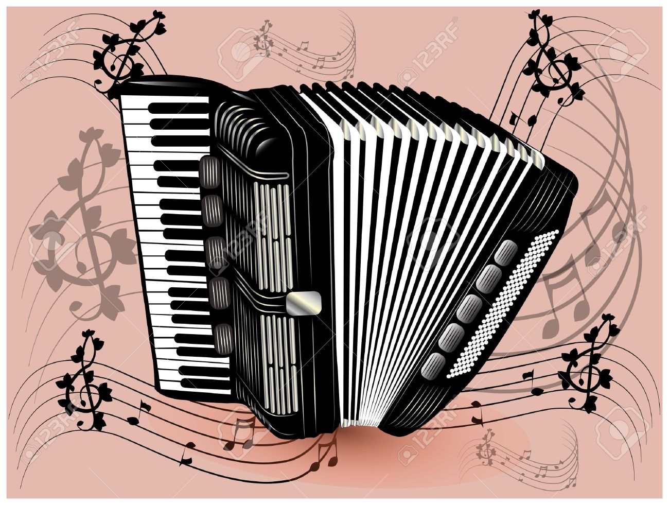 Description: An accordion with musical notes on a pink background stock photo - 959997.