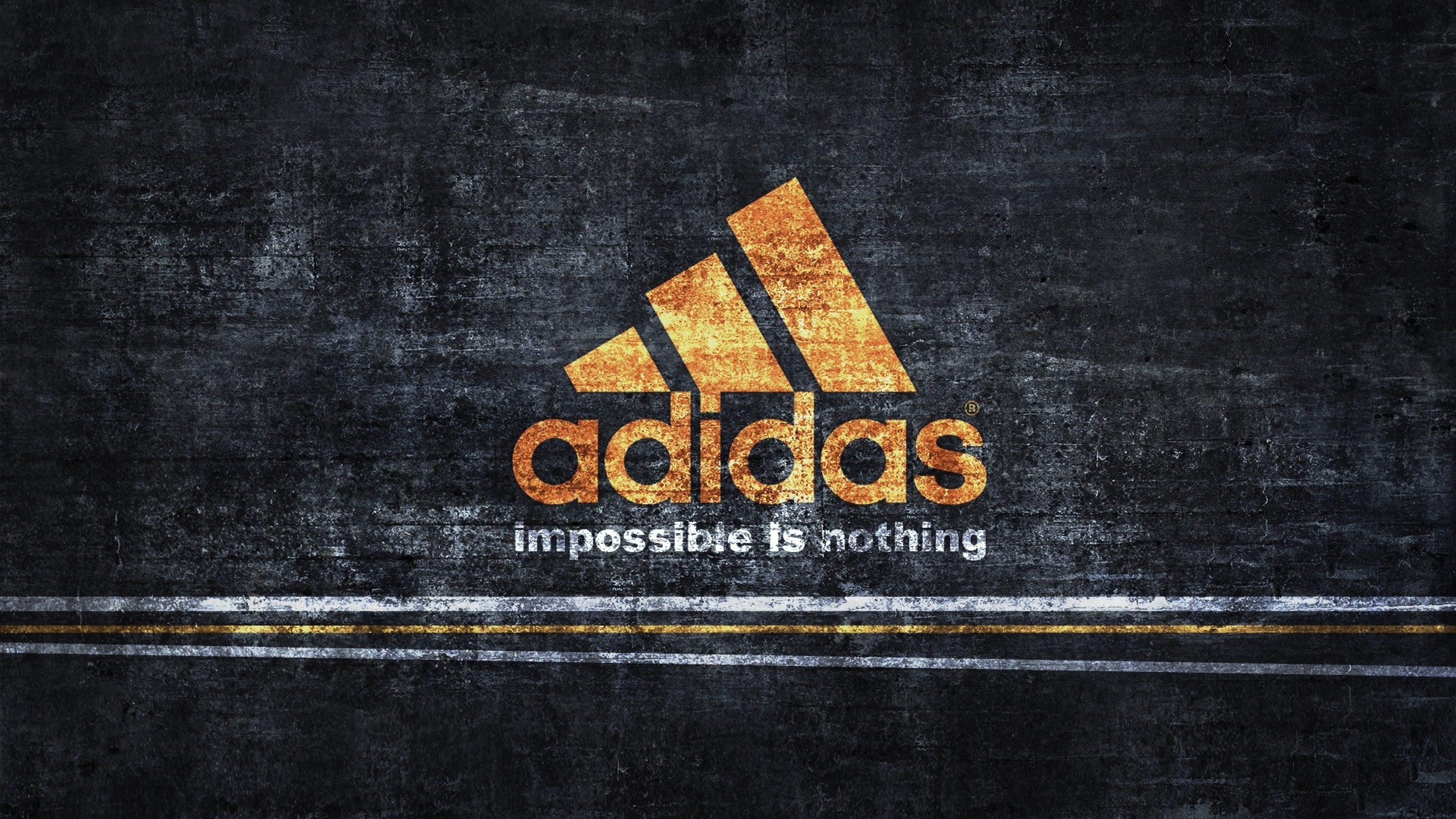 Description: A black and orange adidas logo on a black background with a stripe in the middle of the image.