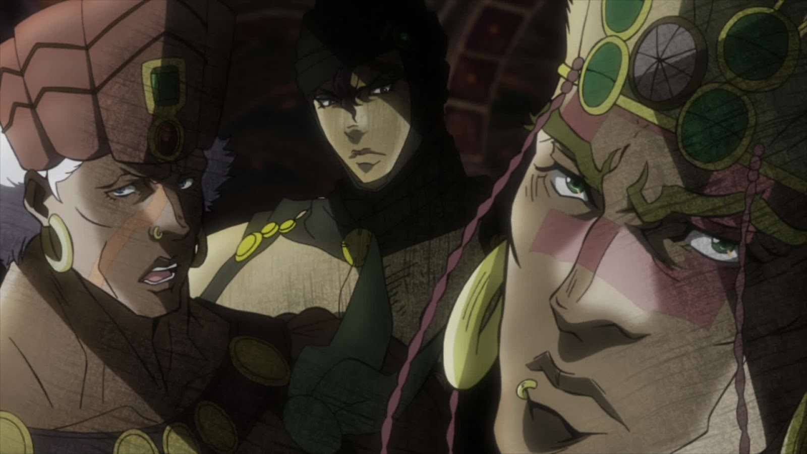 Description: A group of people standing next to each other in a room with a light on them and a black background.