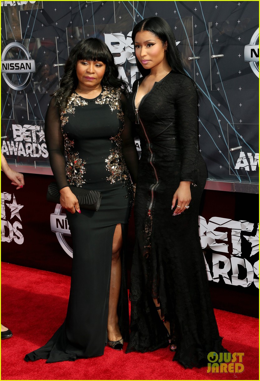 Description: Two women standing next to each other on a red carpet at an awards event with a black dress and black heels.