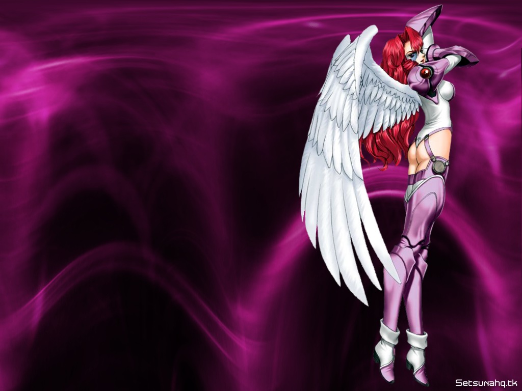 Description: A woman with white wings and a purple background with a pink background and a purple background with a white angel.