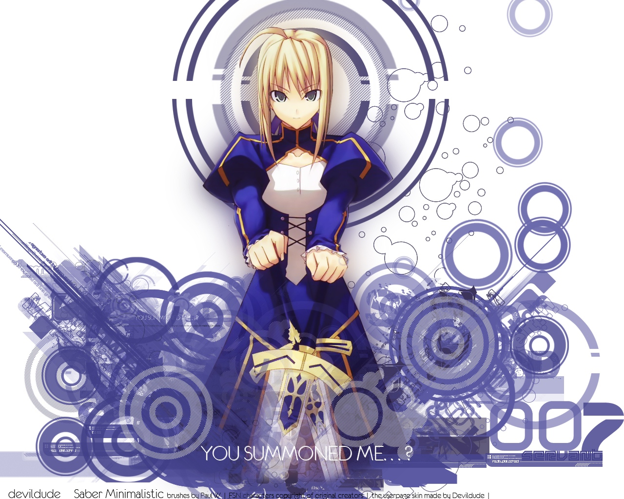 Description: A anime character with a blue outfit and a white shirt and a black and yellow hat and a white and blue background.