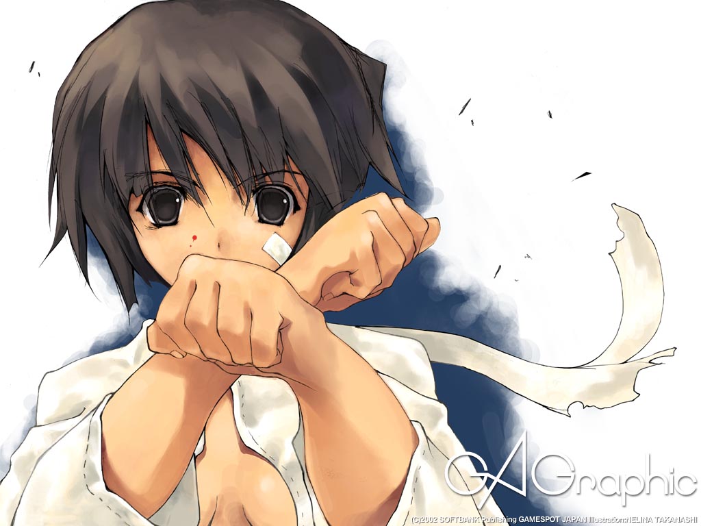 Description: A anime character with a white shirt and black hair pointing his finger at the camera with a white background.