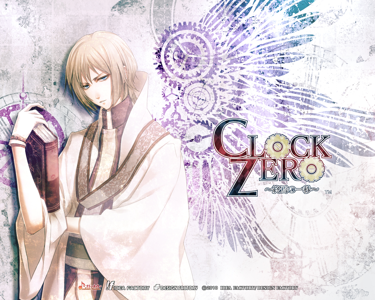 Description: A anime character with a white shirt and a white scarf on his head and a purple and white background.
