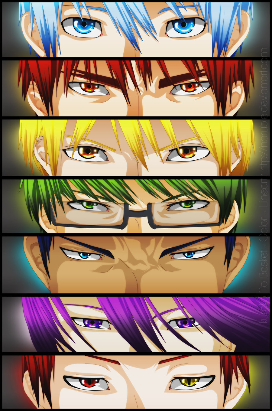 Description: A group of anime characters with different colored hair and glasses on their faces.