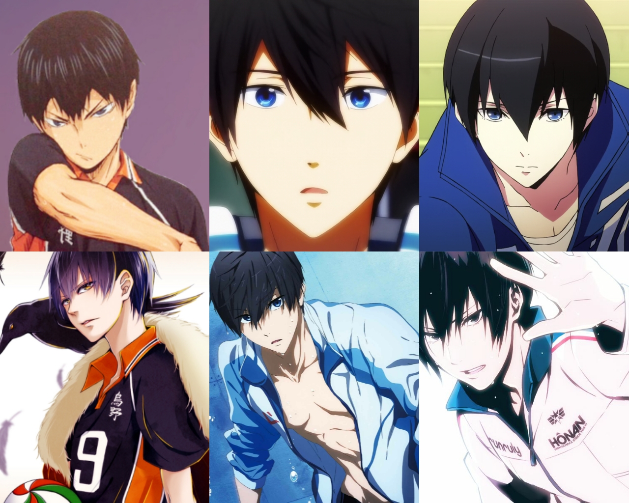 Description: A group of anime characters with different expressions on their faces and body parts.