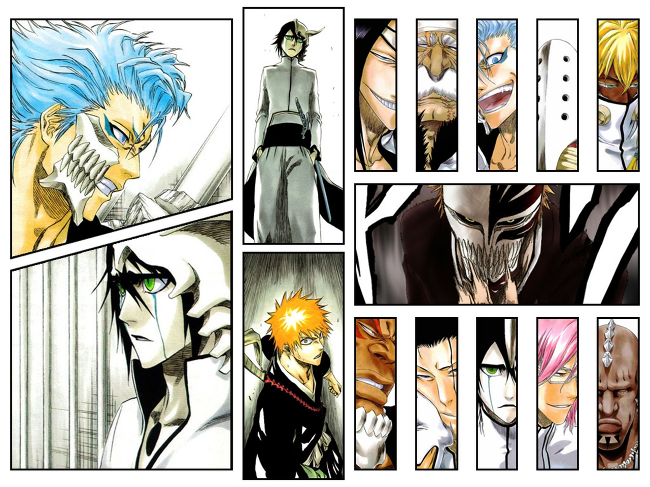Description: A page of anime characters with different expressions and hair colors.