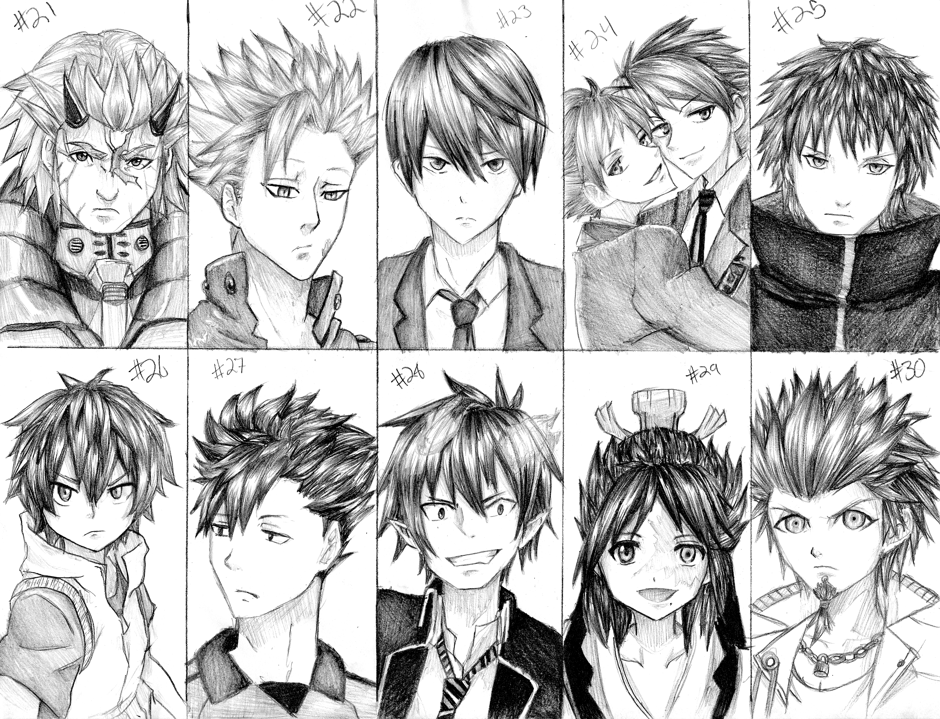 Description: A bunch of anime characters with different hair styles and expressions.