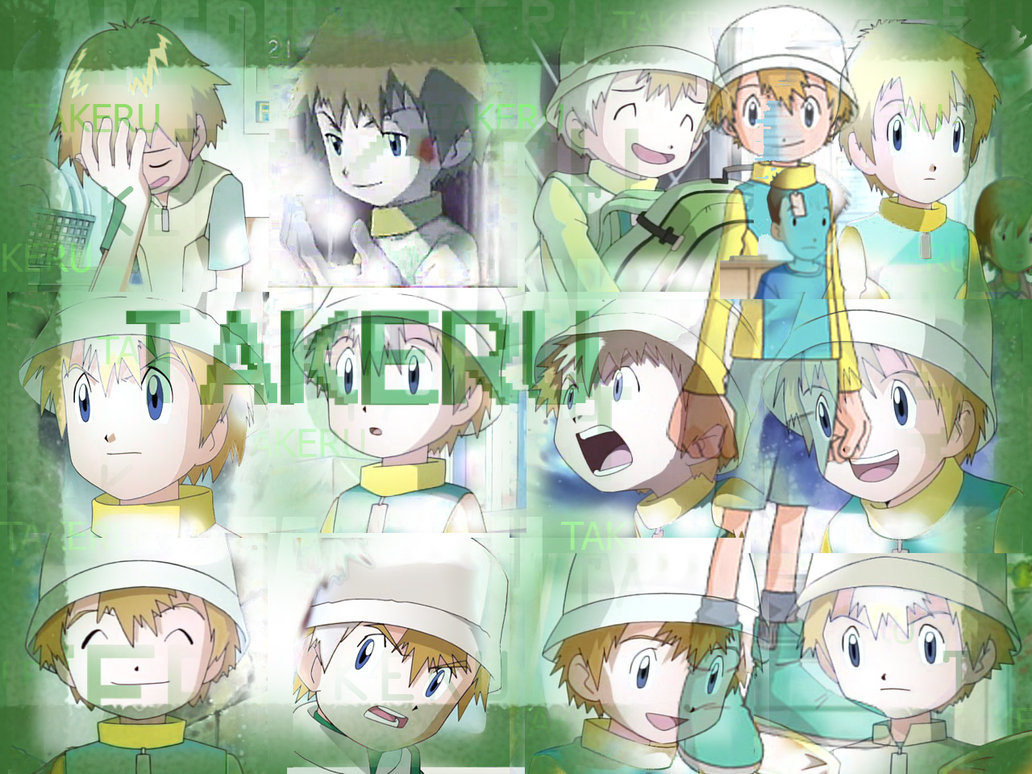 Description: A group of anime characters with hats on and green background with words in the middle of them that say.