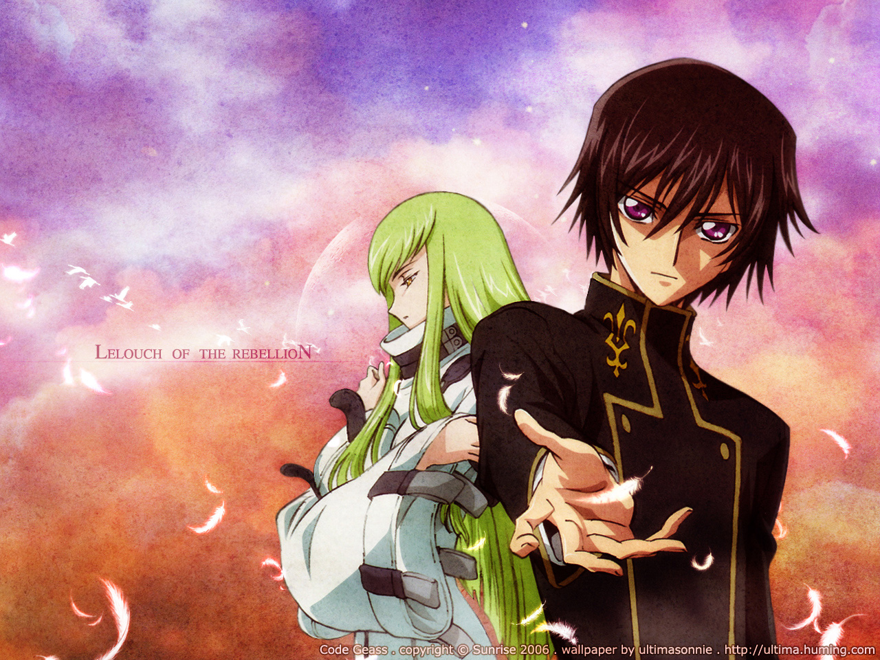 Description: Two anime characters standing next to each other in front of a purple sky with clouds and stars in the background.