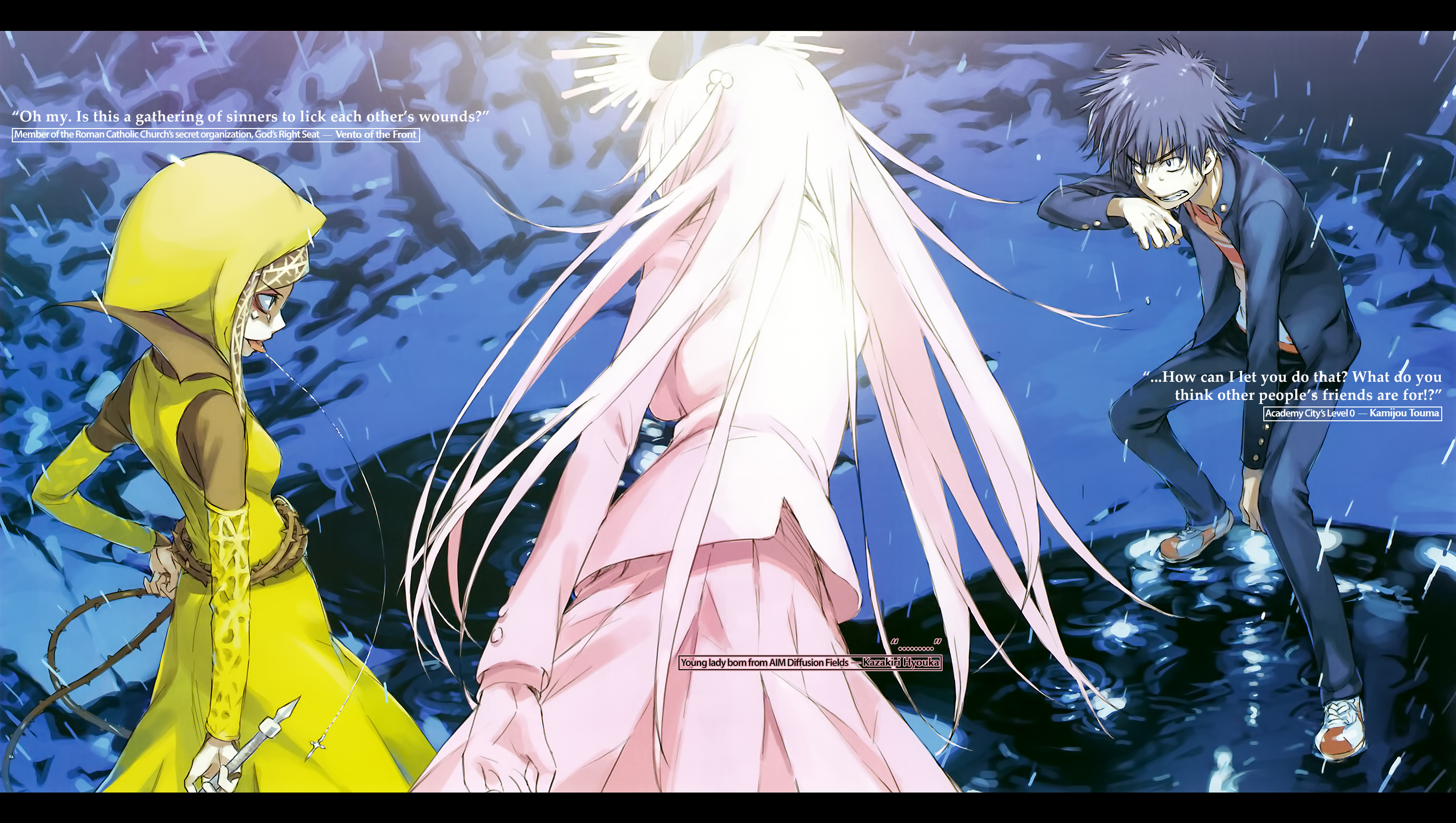 Description: A couple of anime characters standing next to each other in the rain with a yellow dress on and a black and white outfit on.
