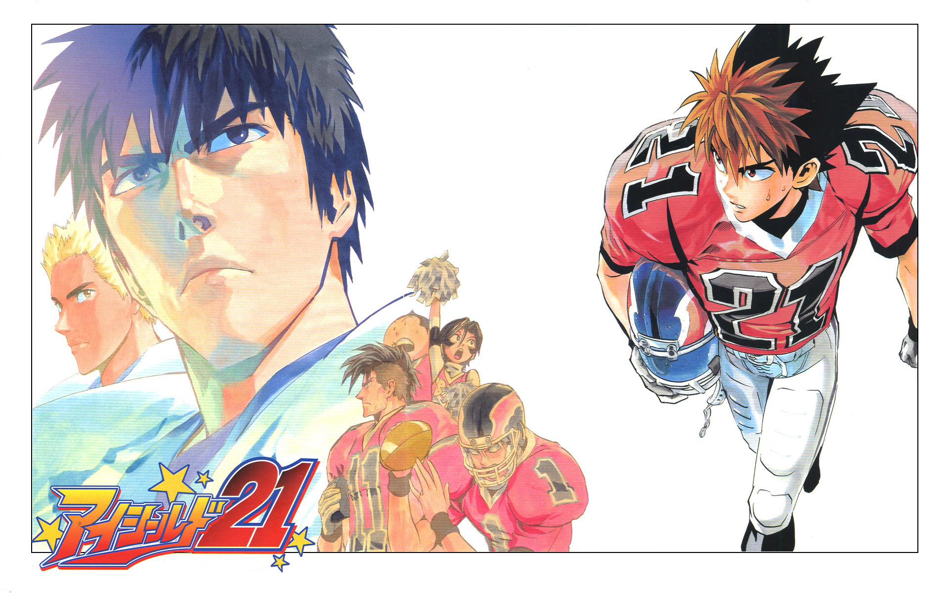 Description: A group of anime characters with a white background and a red and blue uniform on the front of the image.