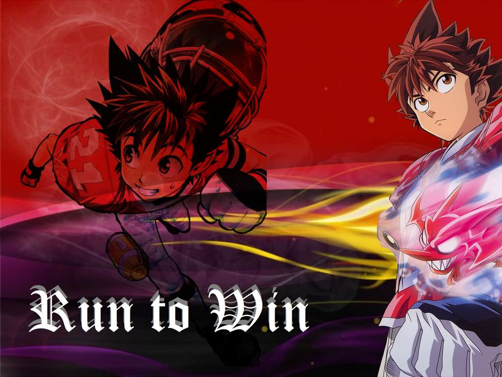 Description: A couple of anime characters standing next to each other with the words run to win in front of them.