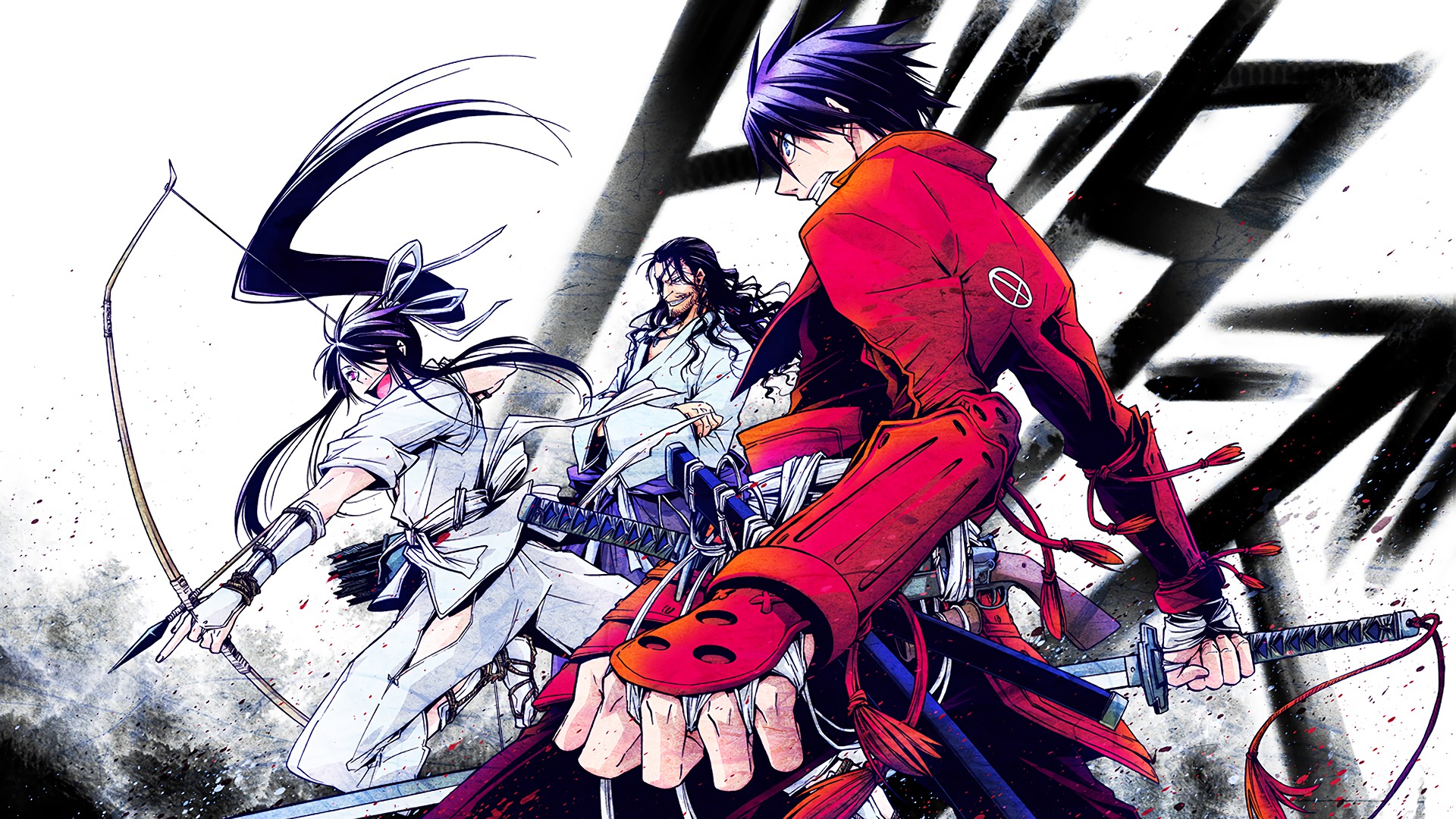 Description: A group of anime characters with swords and blood colors on their hands.