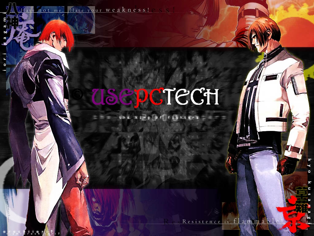 Description: Two anime characters standing next to each other with the word use tech on them in front of them is a colorful background.