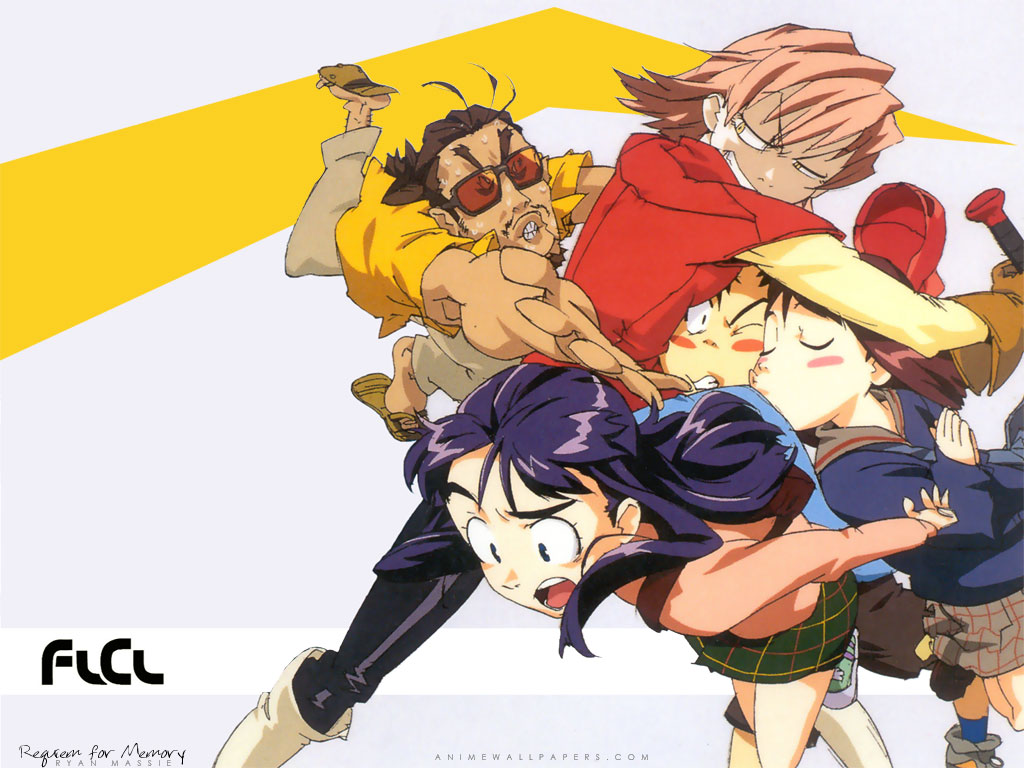 Description: A group of anime characters with a yellow background and a white background with a yellow arrow above them and a yellow arrow above them.