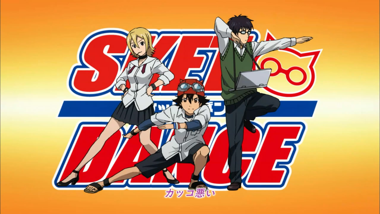 Description: A group of anime characters standing next to each other on a yellow background with the words sex dance written in japanese.