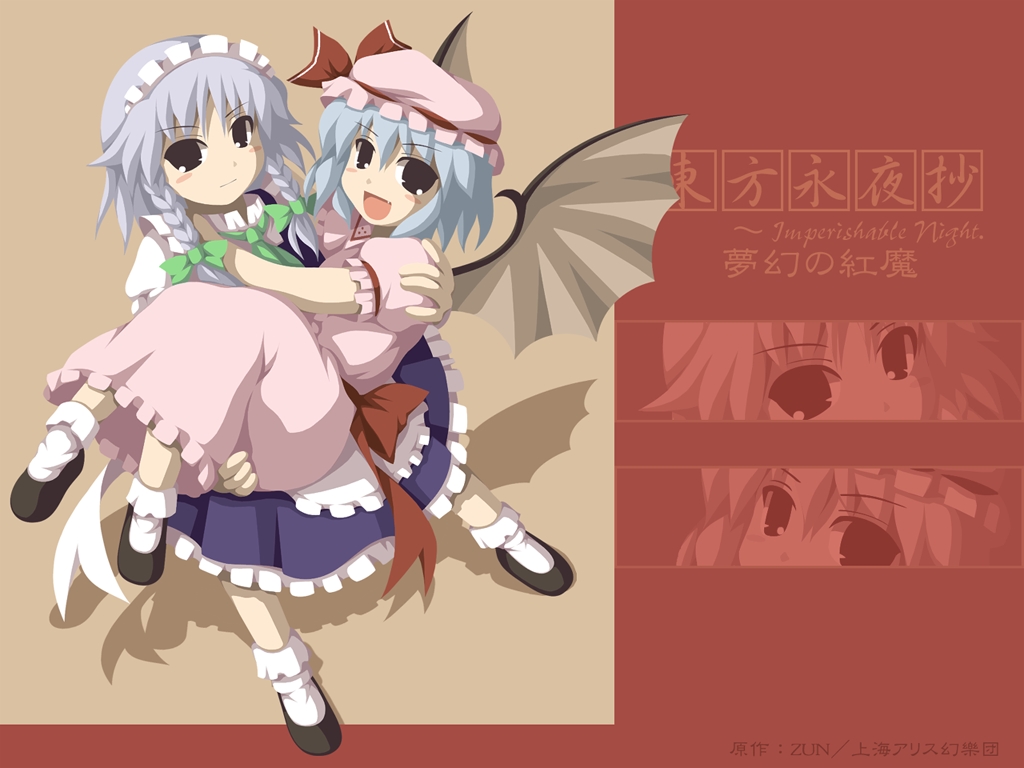 Description: A couple of anime characters hugging each other with a dragon in the background of the picture and a red background.