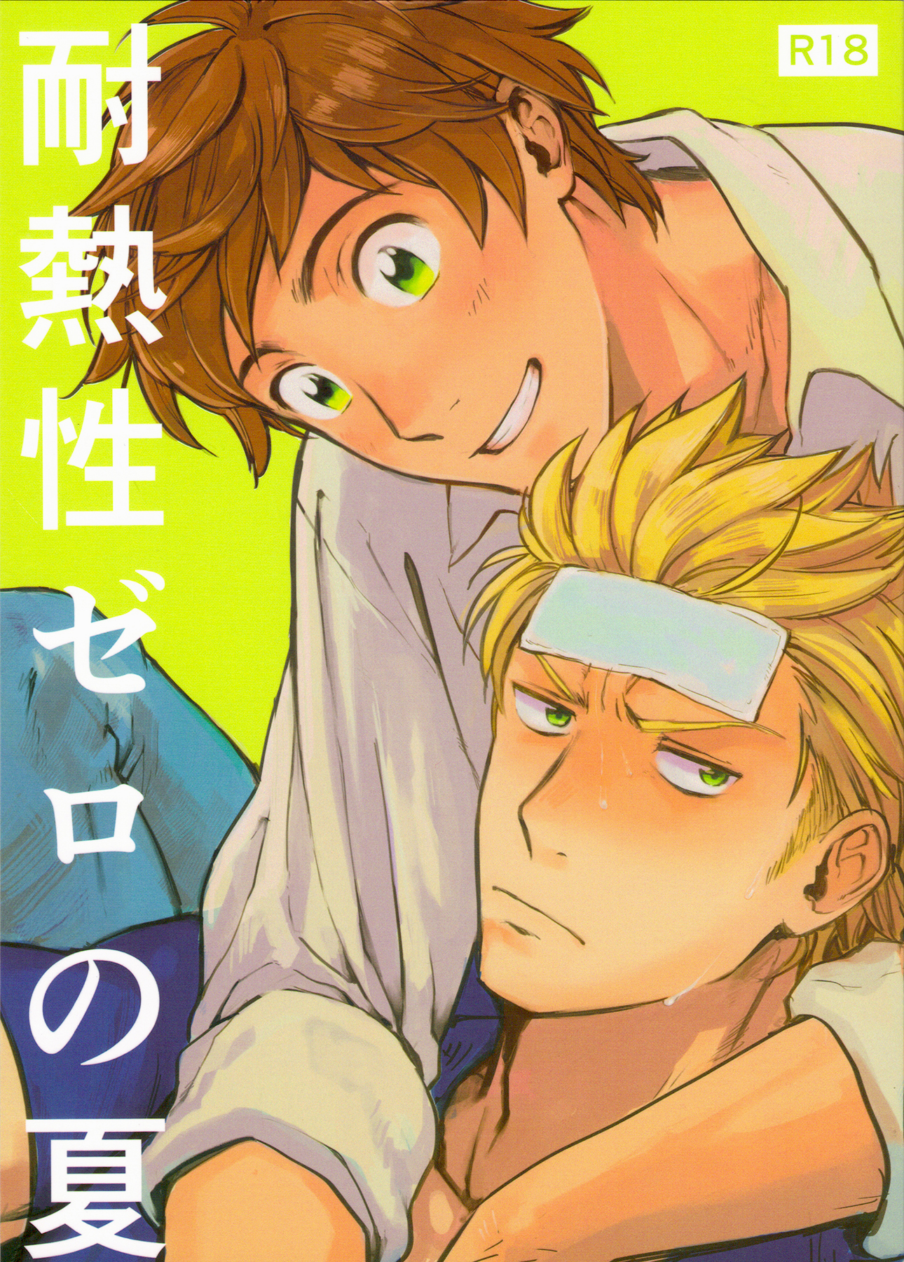 Description: A couple of anime characters are hugging each other in front of a yellow background with asian characters in the background.