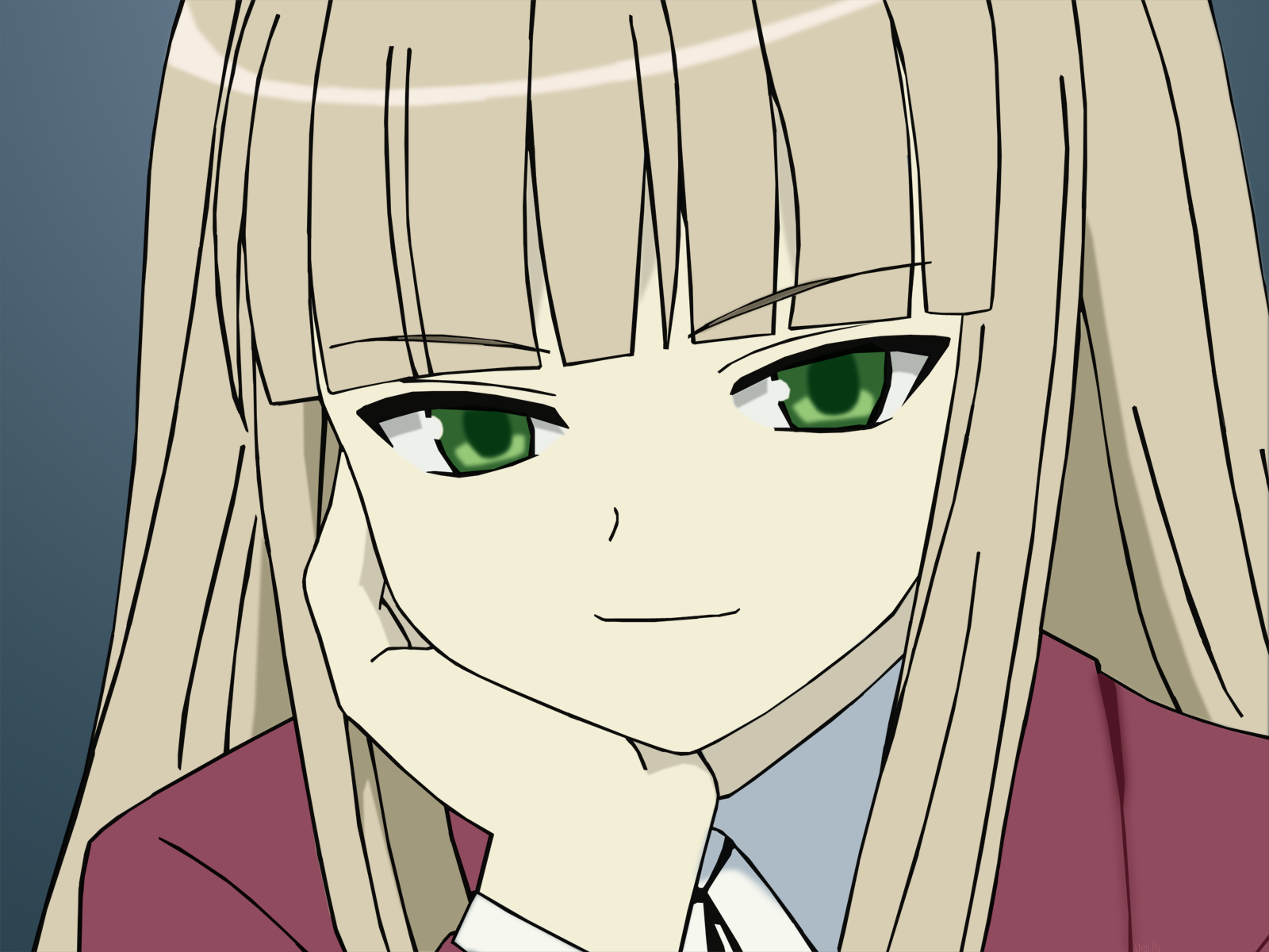 Description: A anime girl with long blonde hair and green eyes looking at the camera with a serious look on her face.