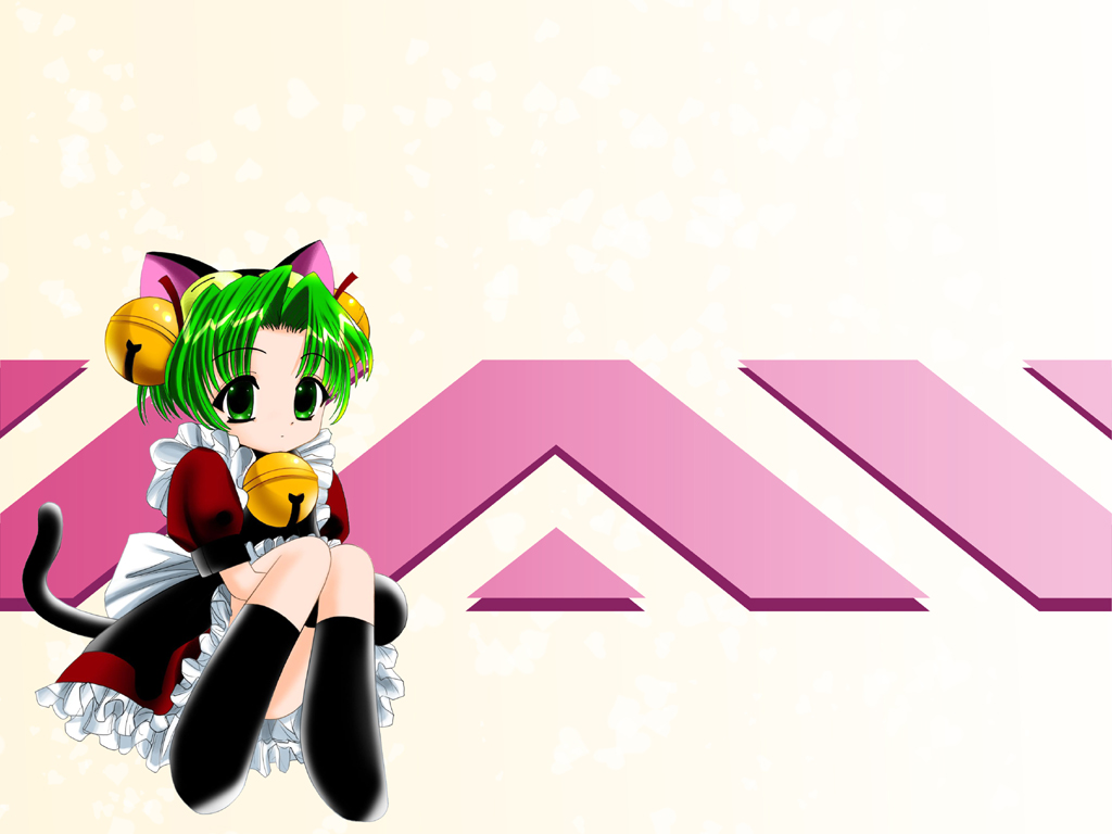 Description: A cartoon character sitting on a pink and white background with a cat on her lap and a cat on her lap.