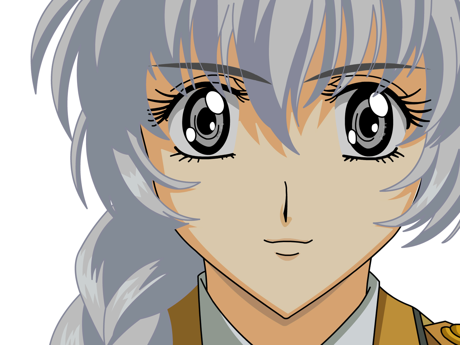 Description: A anime character with grey hair and big eyes and a brown vest on his shoulders and a white shirt on his chest.