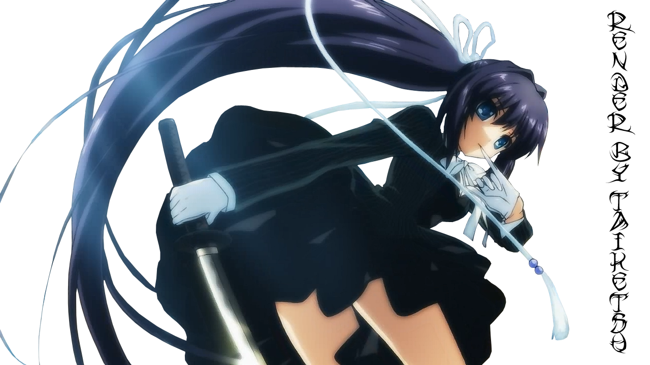 Description: A anime girl with long hair and a sword in her hand.