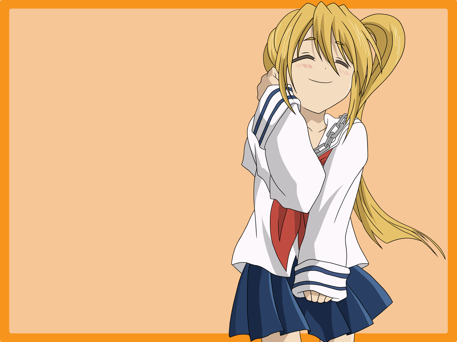 Description: A girl in a sailor outfit is talking on a cell phone with a smile on her face and a ponytail.
