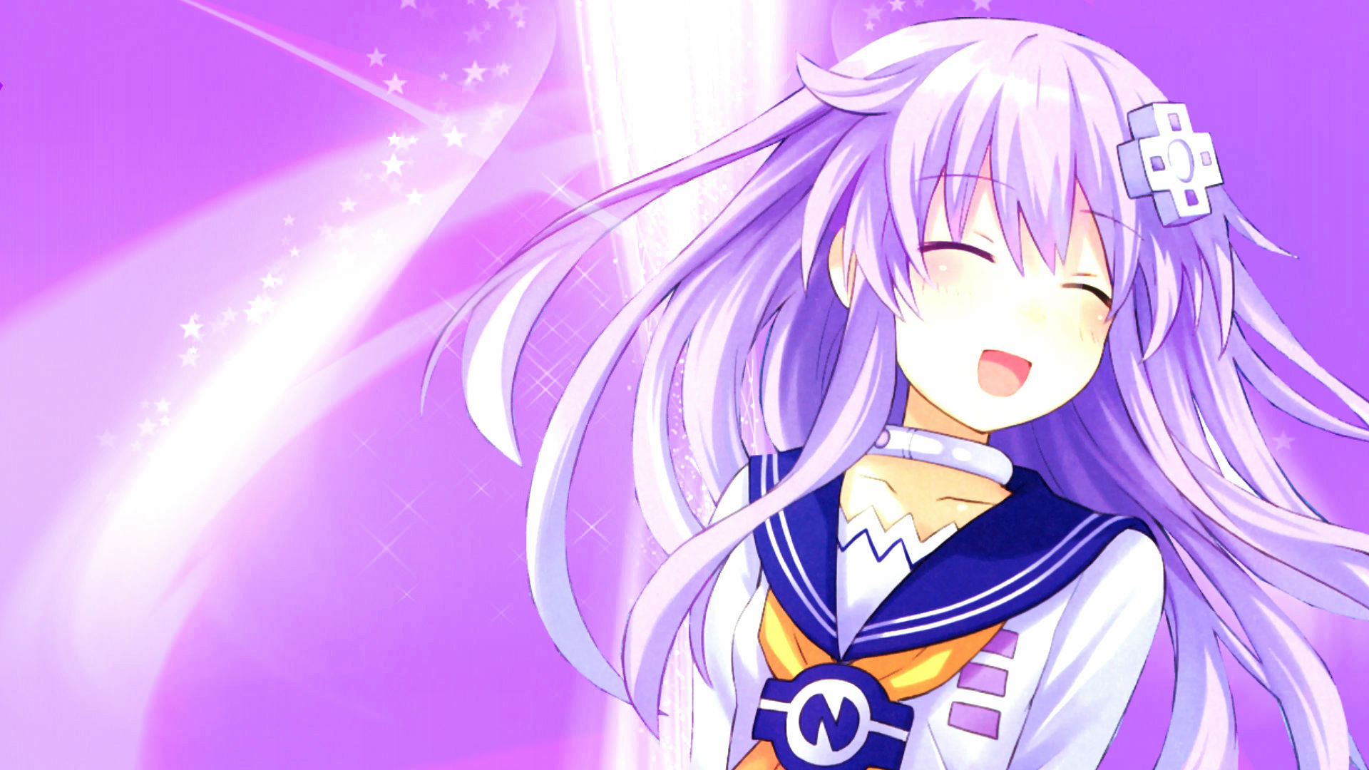 Description: A anime girl with long white hair and a purple background with stars and a purple background with a purple background and a purple background with a white star.