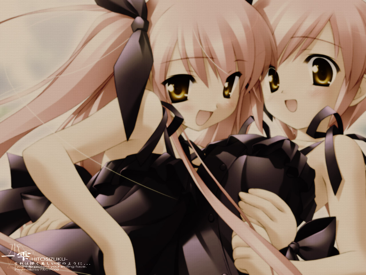 Description: Two anime girls with long hair and black dresses are posing for a picture together.