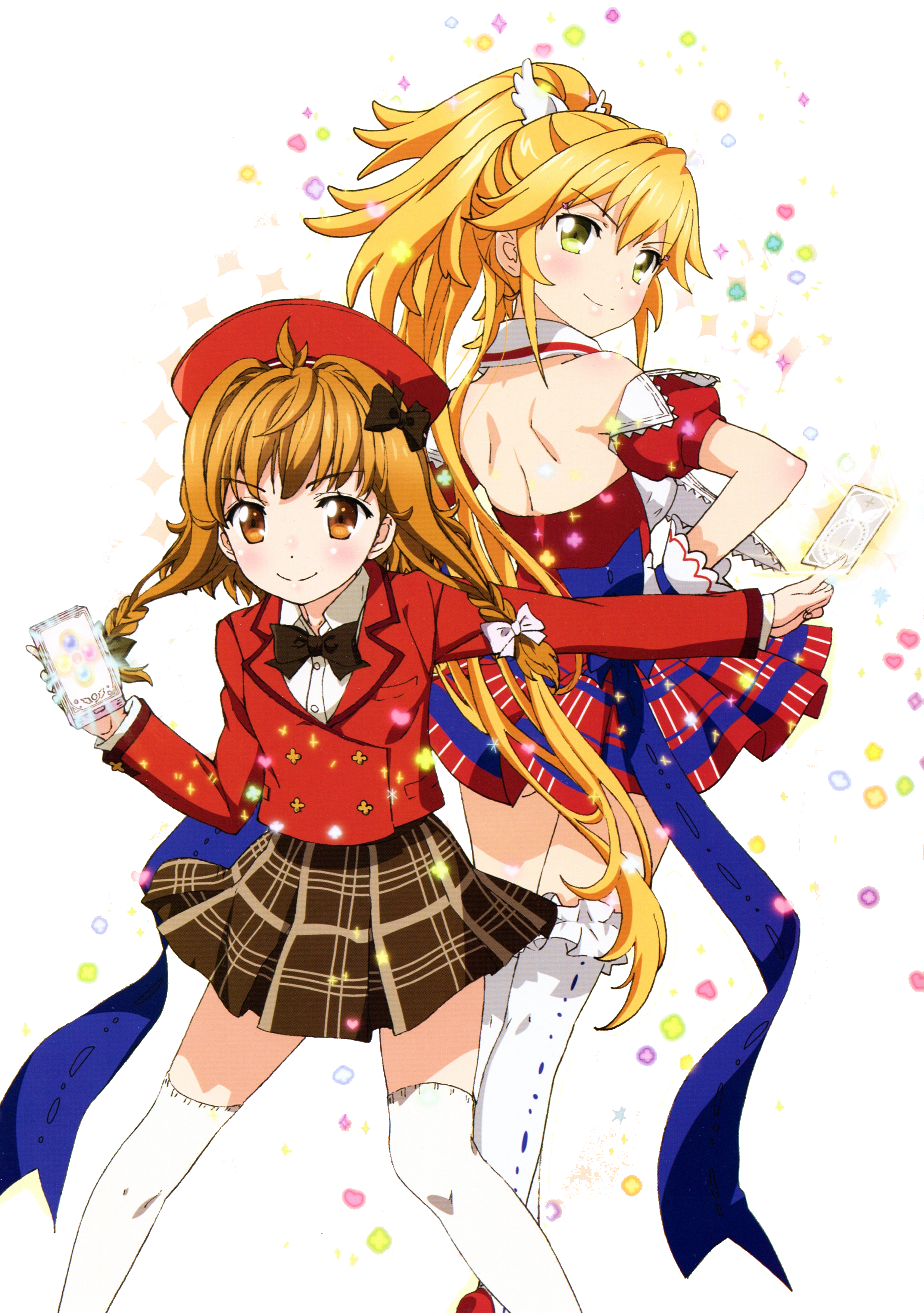 Description: Two anime girls with long blonde hair and red tops.