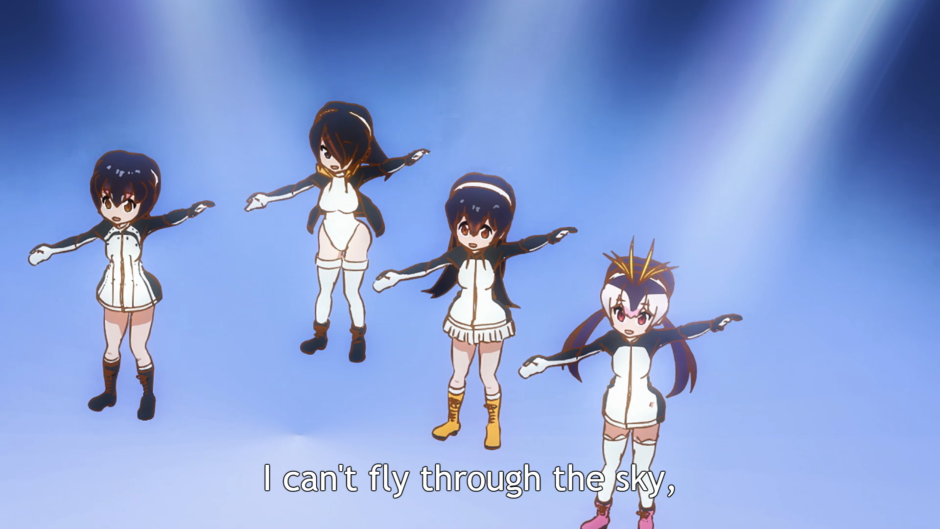 Description: A group of anime girls standing in front of a blue background with a caption that reads.