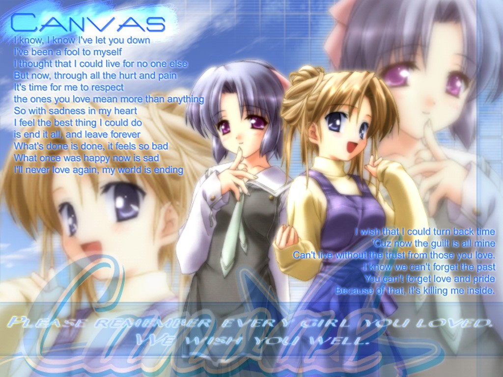 Description: A group of anime girls with a blue background and a quote from the anime character canva's.