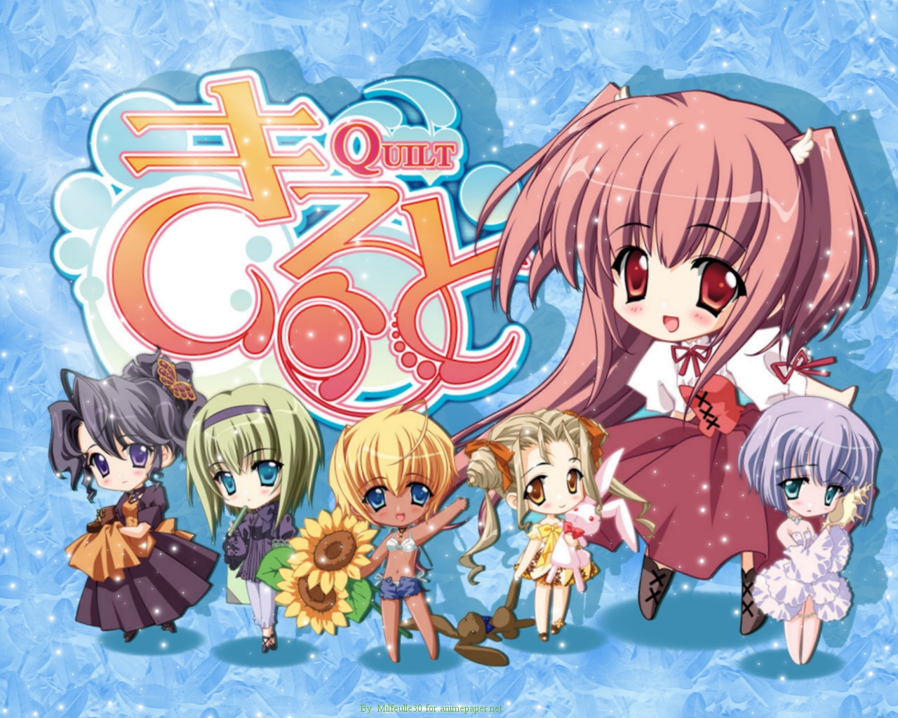 Description: A group of anime girls with a blue background and a blue background with a white background and a blue background with a blue background and white background with a blue border.