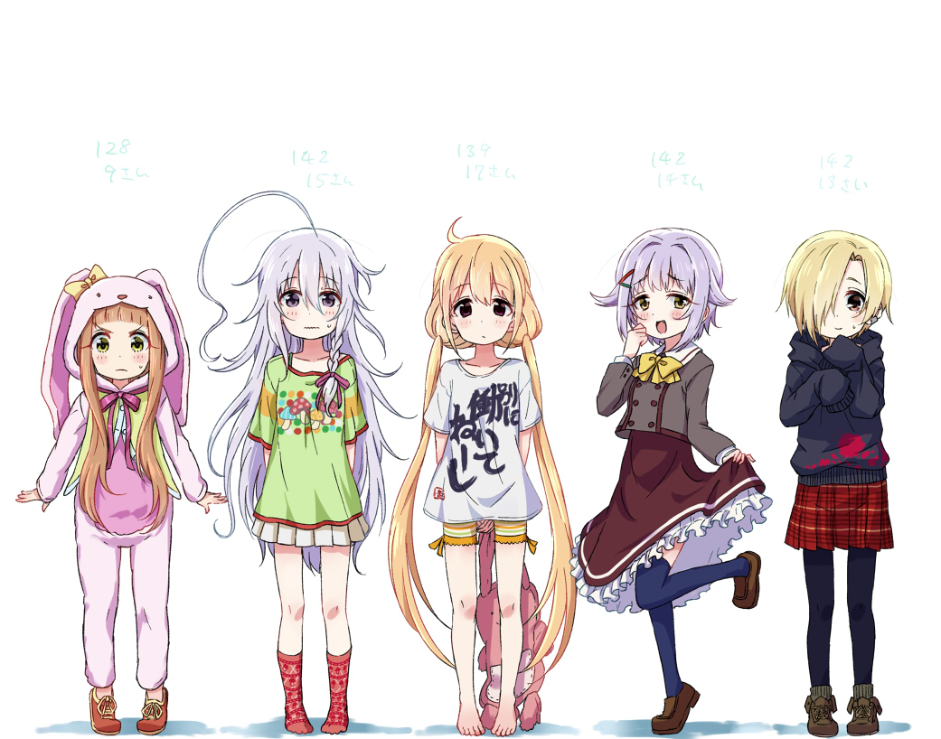 Description: A group of anime girls standing next to each other in front of a white background with a white background.