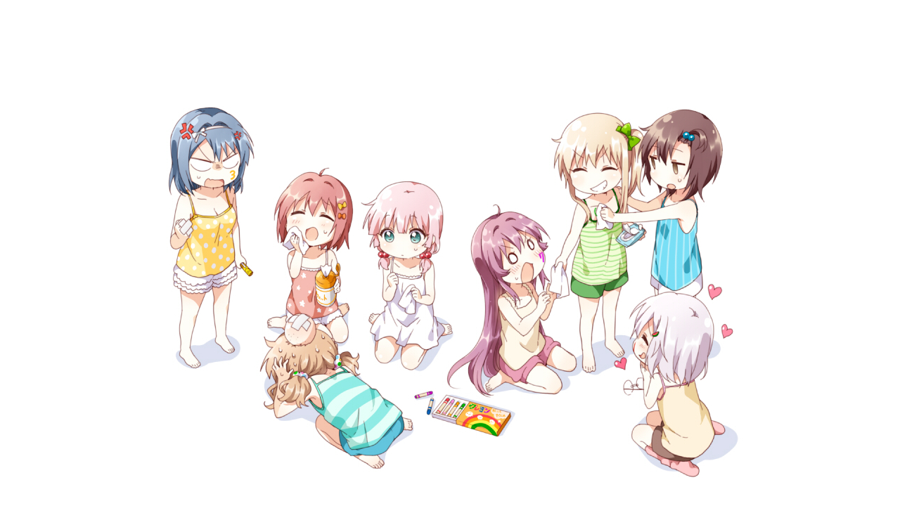 Description: A group of anime girls standing next to each other on a white background with a white background behind them.