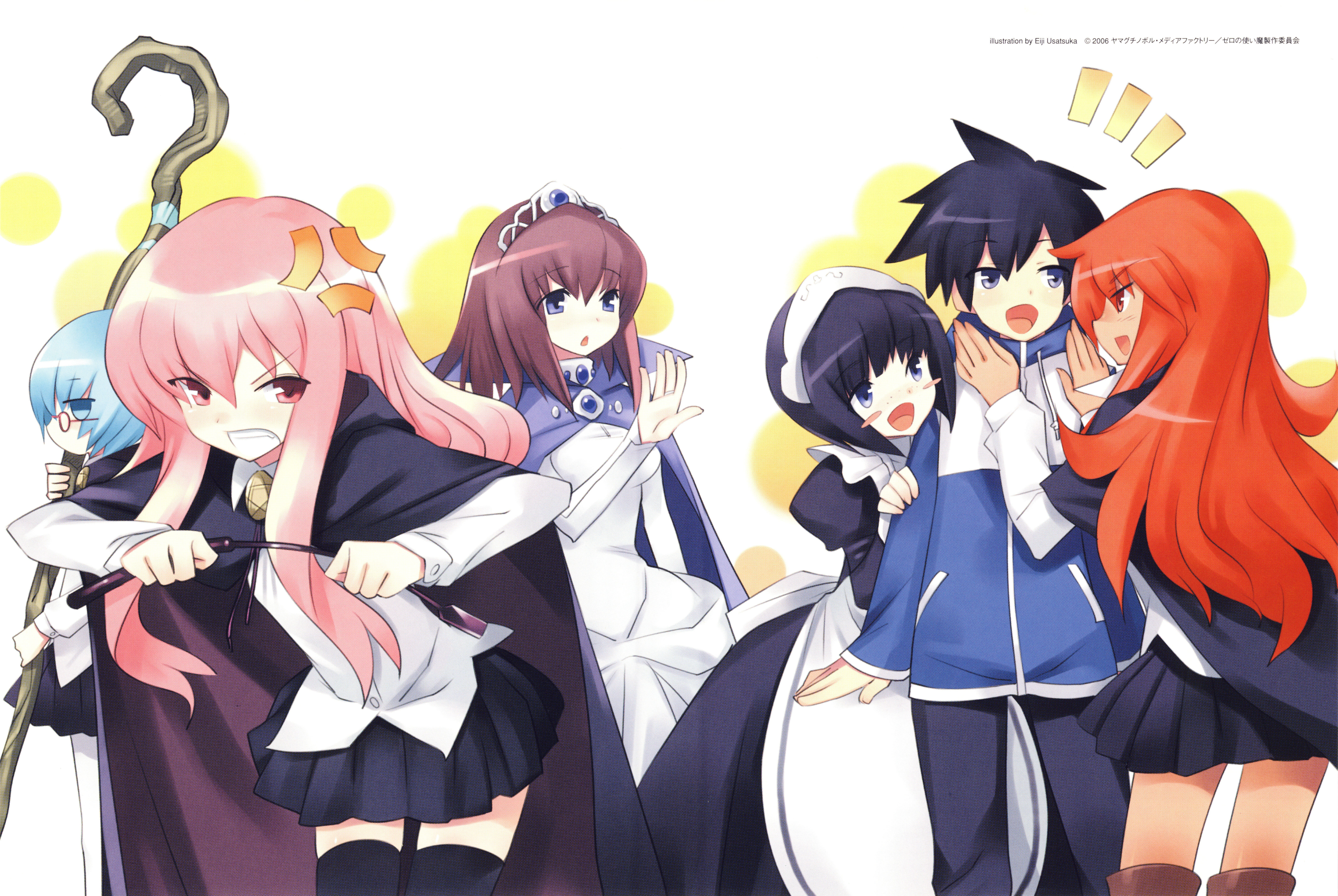 Description: A group of anime girls standing next to each other in front of a white background with a yellow light.