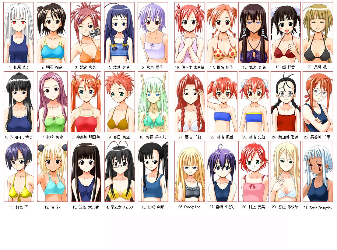 Description: A bunch of anime girls with different hair colors and hairstyles in different styles and colors.