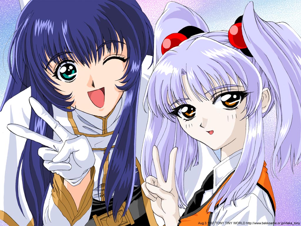 Description: Two anime girls with long hair and horns on their heads.