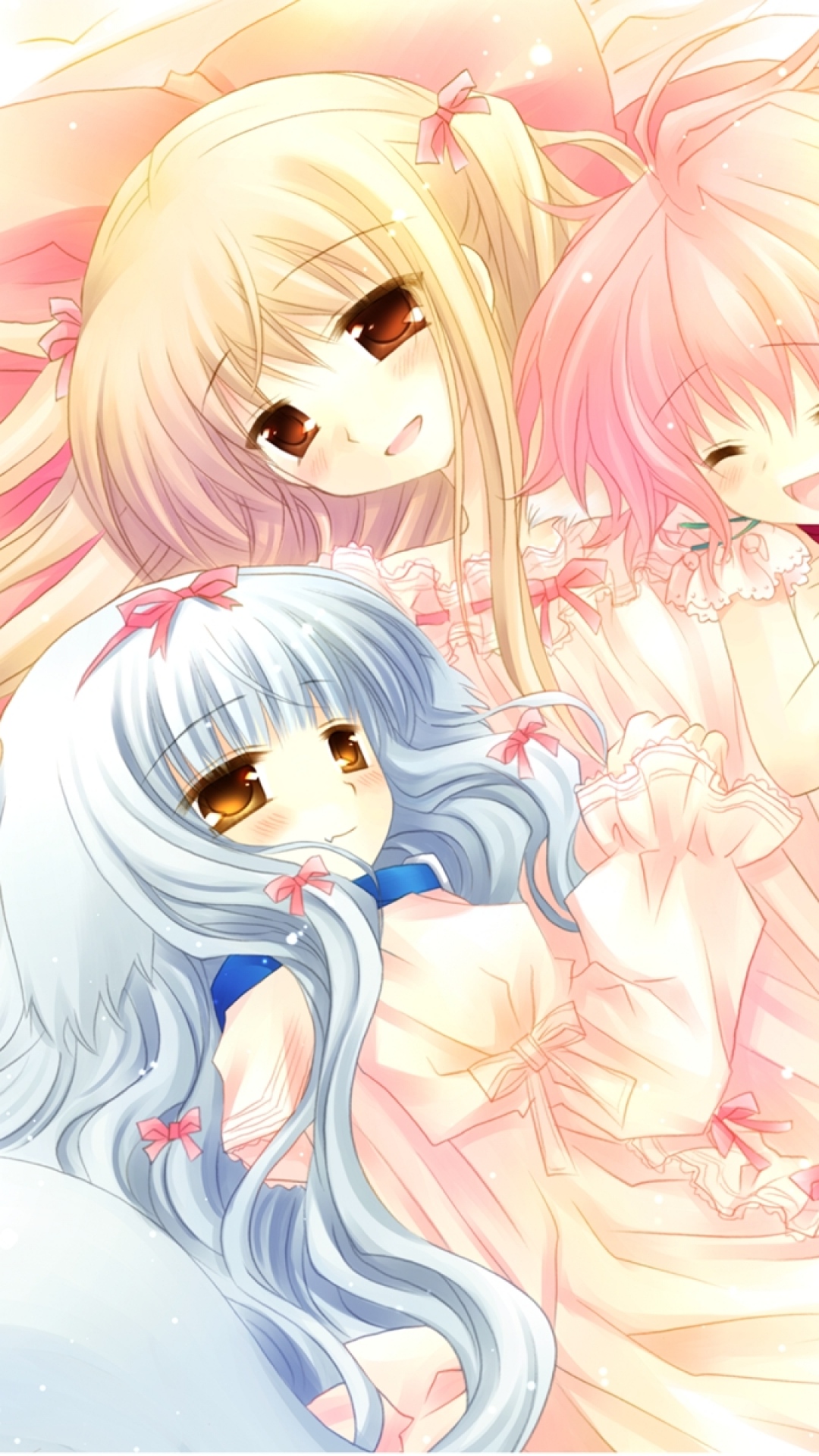 Description: Three anime girls with long hair and blue eyes.