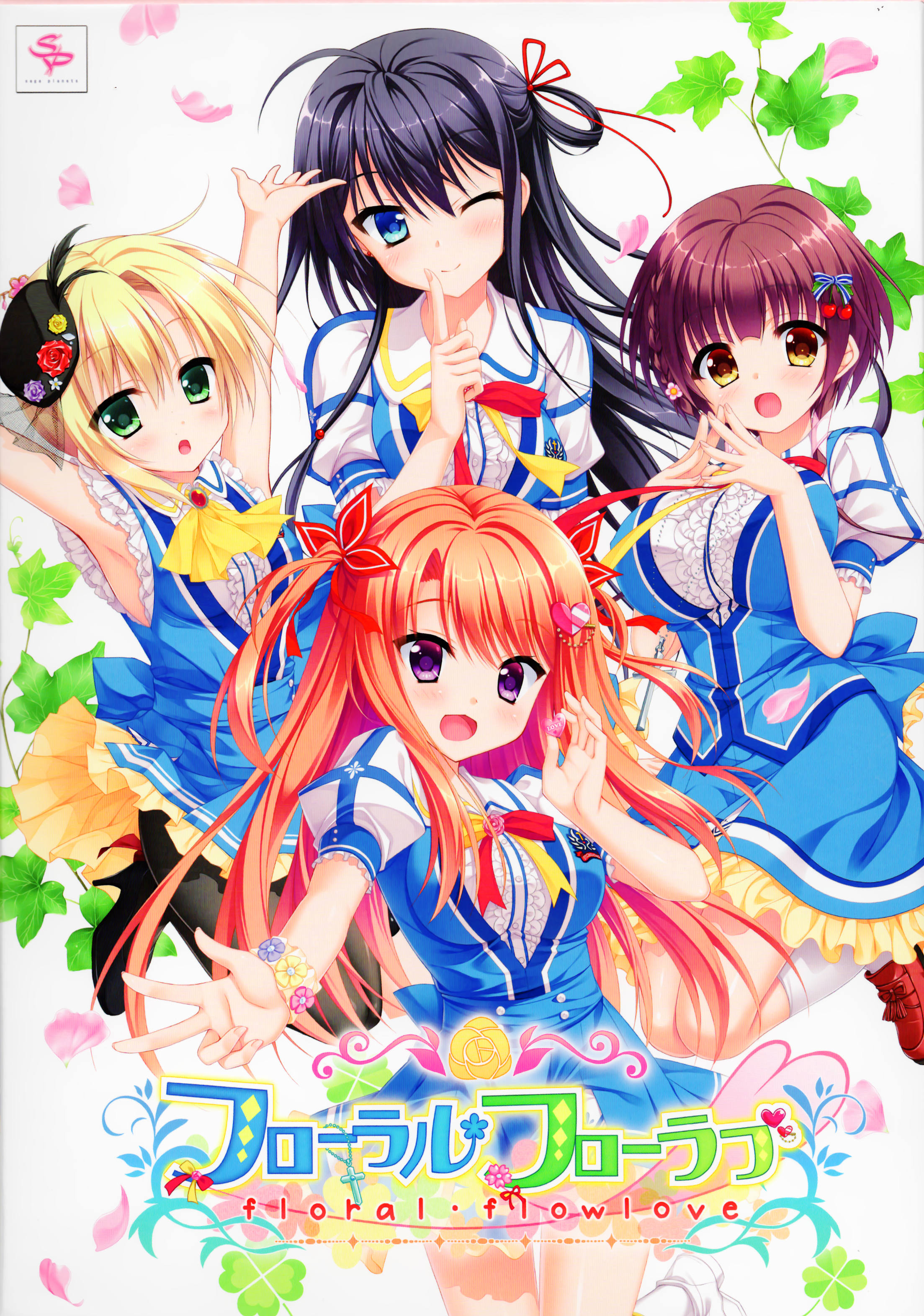 Description: A group of anime girls with long hair and bows on their heads.