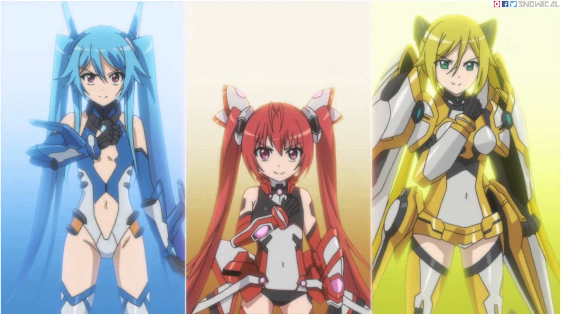 Description: Three anime girls with long hair and long sleeves.