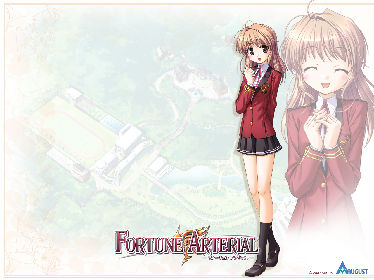 Description: A anime girl with a red jacket and black boots standing next to another girl in a red coat and black boots.