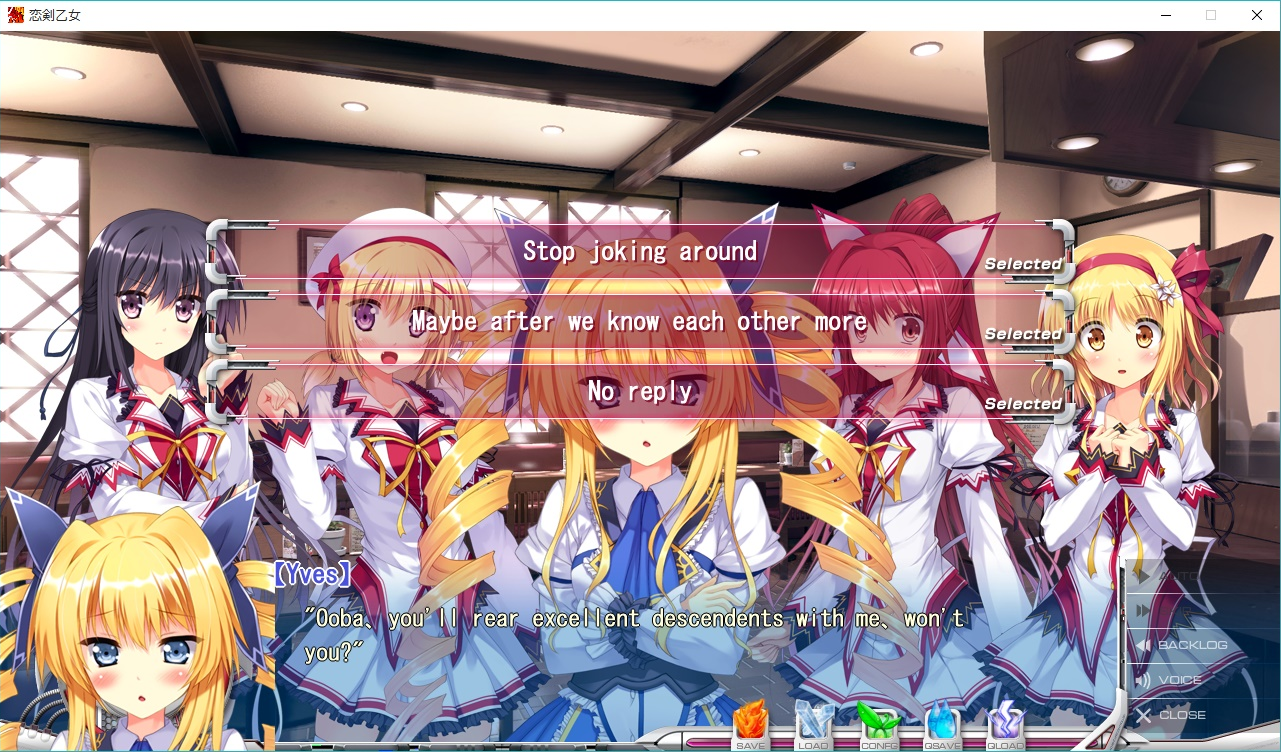 Description: A group of anime girls standing next to each other in a room with windows on the wall and a window behind them.
