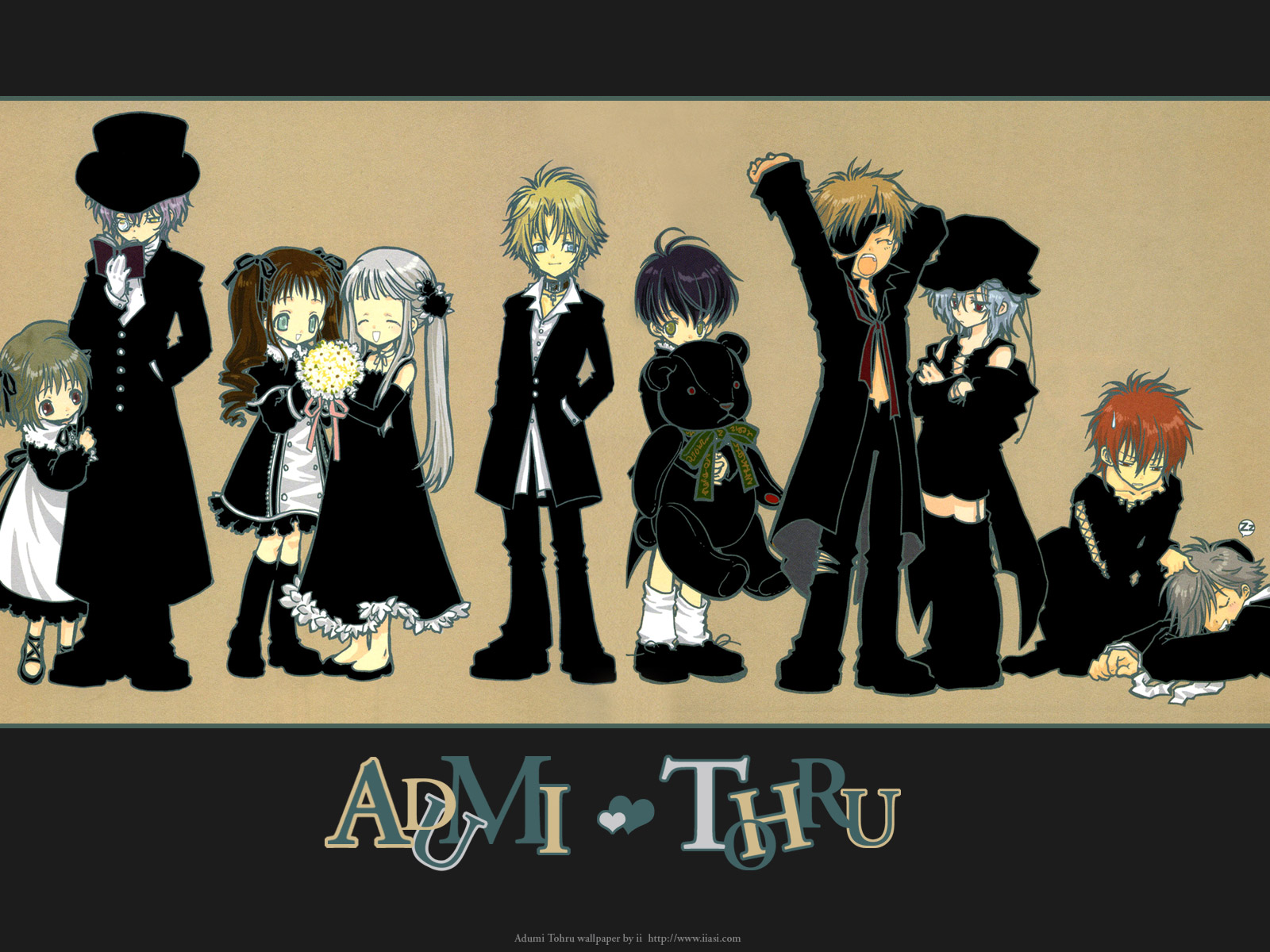Description: A group of anime characters standing next to each other in front of a wall with the words arm and thru.