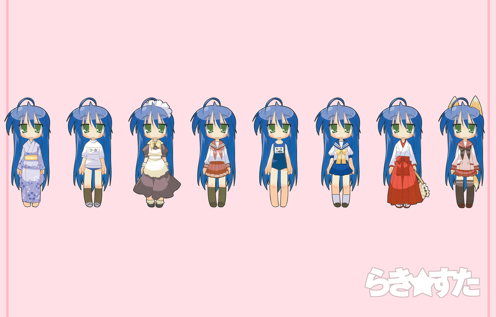 Description: A group of anime characters standing in a row with their backs turned to the camera.